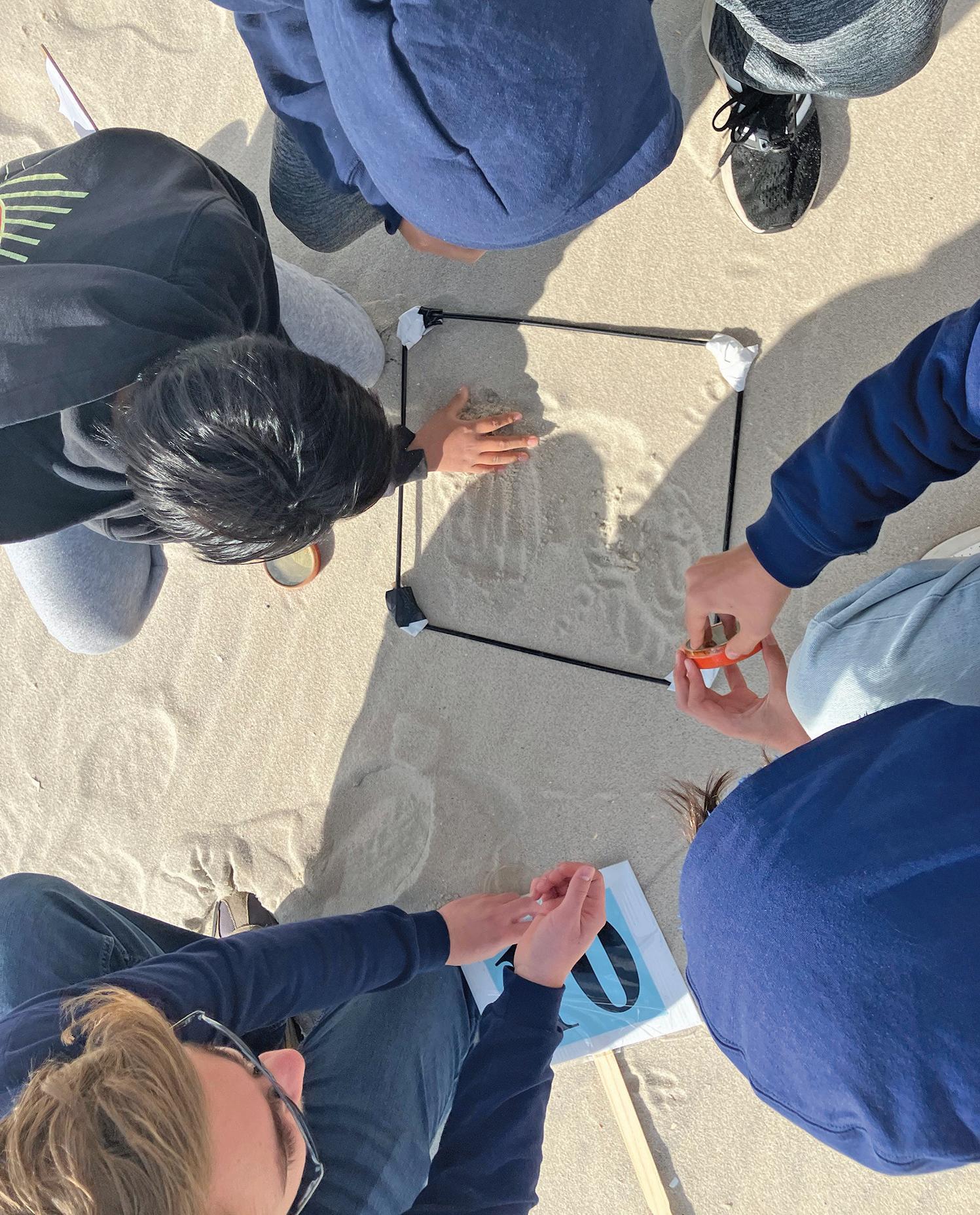 ture walk where they could identify shells. They also held a beach sweep clean-up. As the students put trash in buckets, seagulls were close by, looking for breakfast.
