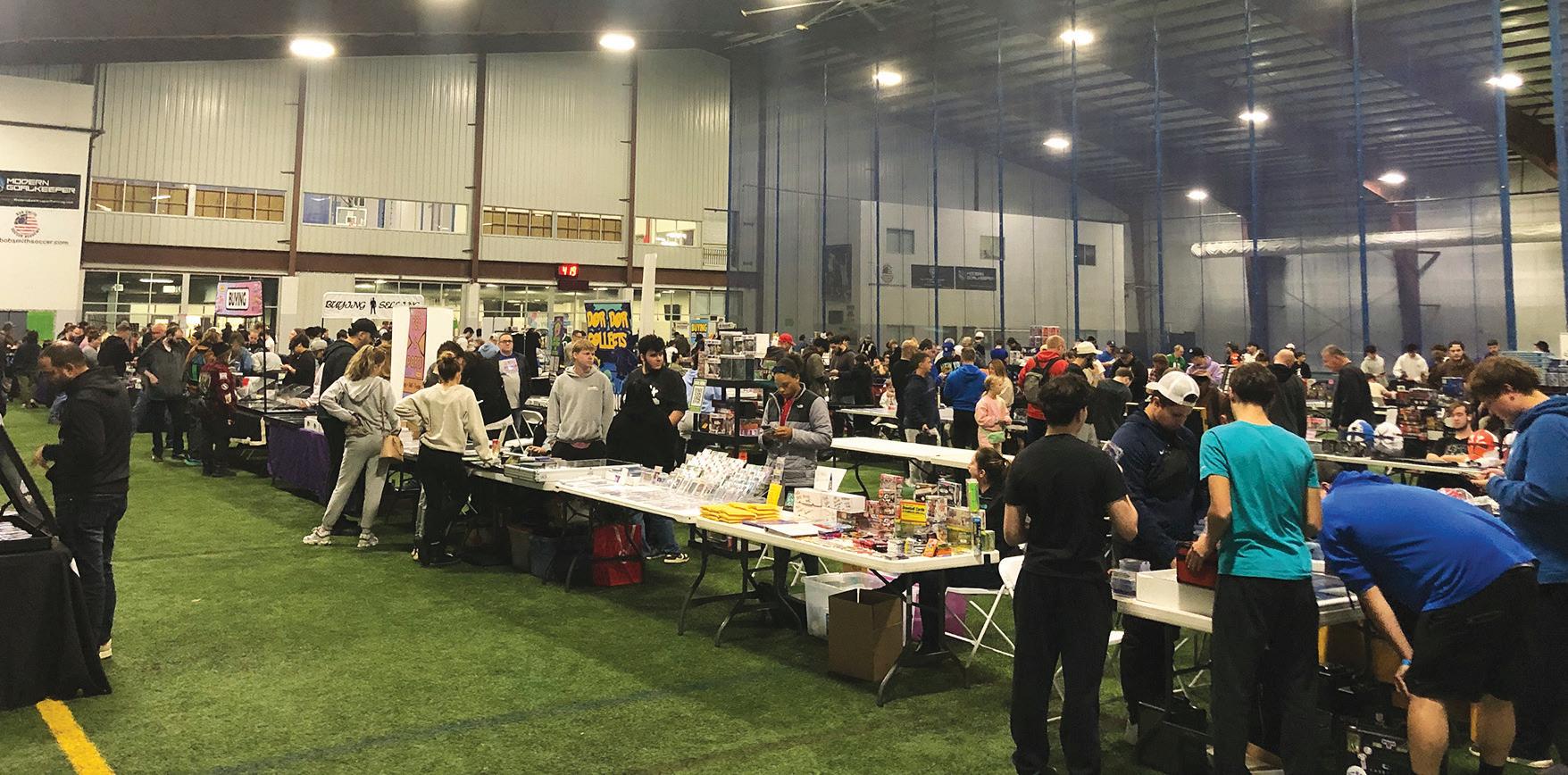 turf field in the back of the complex, and it had over four double-sided rows of tables for shoppers to roam and check out.