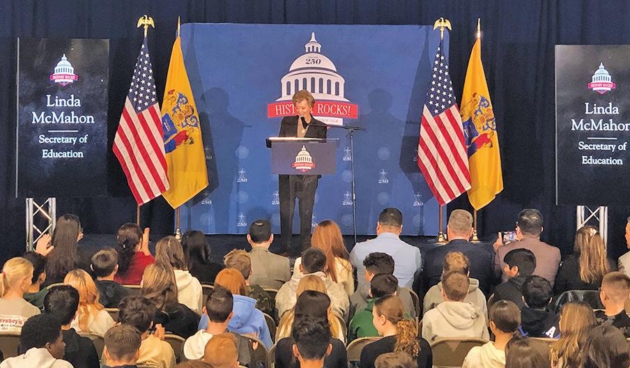 COLTS NECK – Secretary of Education Linda McMahon made an appearance at Cedar Drive Middle School in Colts Neck as part of the nationwide “History Rocks!” tour, which aims to promote civics and American history education.