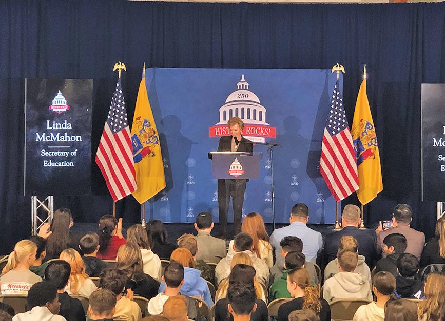 Linda McMahon made an appearance at Cedar Drive Middle School in Colts Neck as part of the nationwide “History Rocks!” tour, which aims to promote civics and American history education.