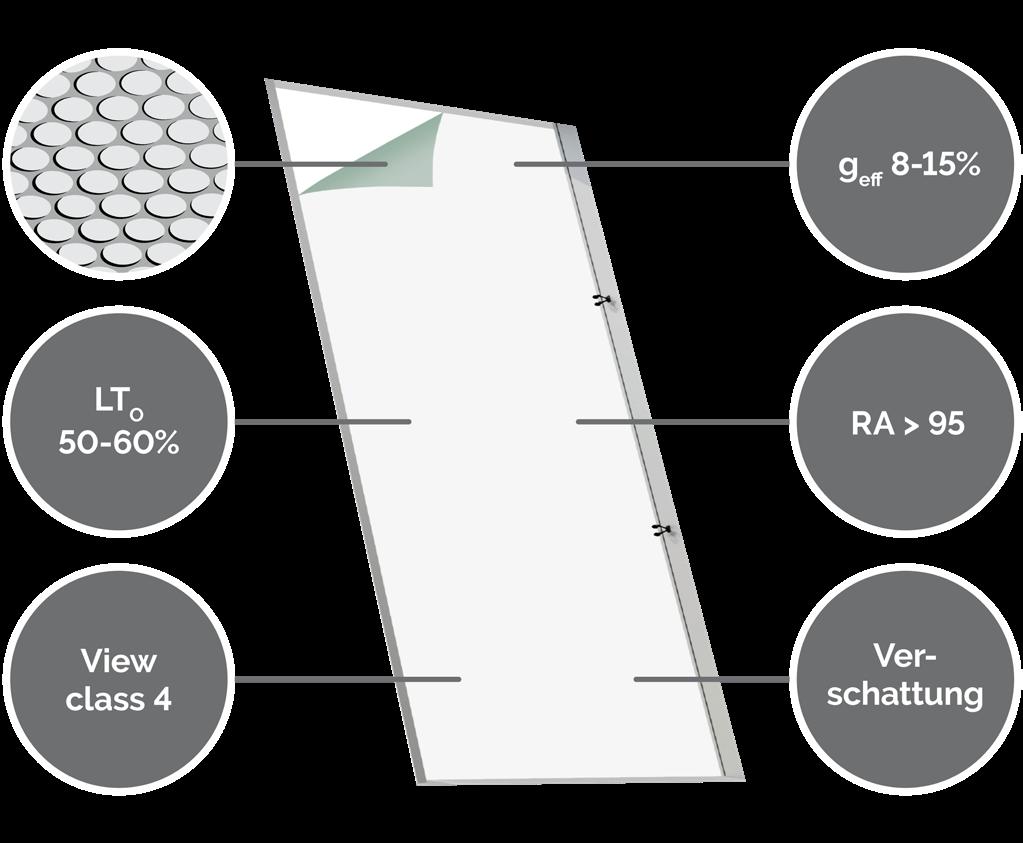 MicroShade® is a micro-structured film installed inside the glazing and provides efficient shading, while at the same time ensuring plenty of daylight and a clear view to the outside. This leads to energy savings, increased well-being and work productivity.