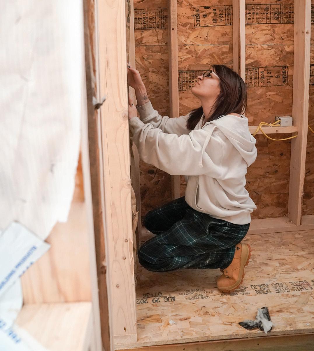 gratefulness with the students. “Do you know who you are building this home for?” she asked. She shared that a current resident of the shelter who has spent more of his life unhoused, than housed, will be the first resident of the tiny home community. He is a veteran and now works at the shelter. Through teary eyes, she thanked the students for their dedication and work.
