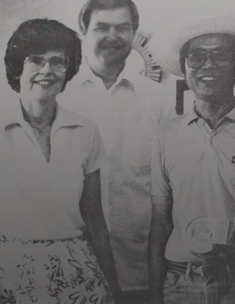 PHOTO: From left to right: Rev. Donna Thomas, Convair missionary pilot, a Philippines guide, and Rev. Charles Thomas.