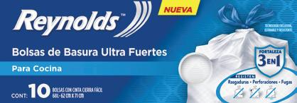 Reynolds desarrolló un portafolio de productos que ataca las principales frustraciones de los consumidores: Fundas más resitentes, para evitar fugas, roturas y rasgaduras y una cinta de cierre más fuerte para mantener la basura en la funda y seguridad en el manejo.