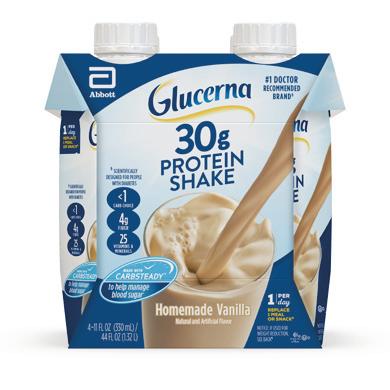 Glucerna® 30g tiene CARBSTEADY® para ayudar a manejar el azúcar en la sangre y 30 gramos de proteína de alta calidad para apoyar la salud de los músculos y el hambre.