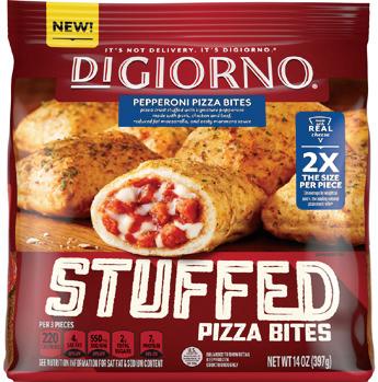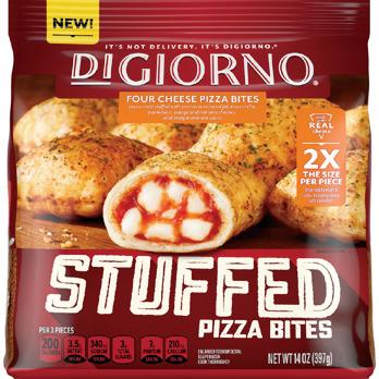 DiGiorno Stuffed Bites son rollos de pizza congelados, hechos con queso 100% real. Una deliciosa opción como bocadillos o un aperitivo antes de la cena.