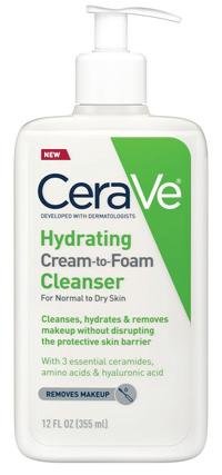 CeraVe Limpiadora Crema-Espuma Hidratante, para piel normal a seca, limpia, hidrata y desmaquilla sin alterar la barrera protectora de la piel.