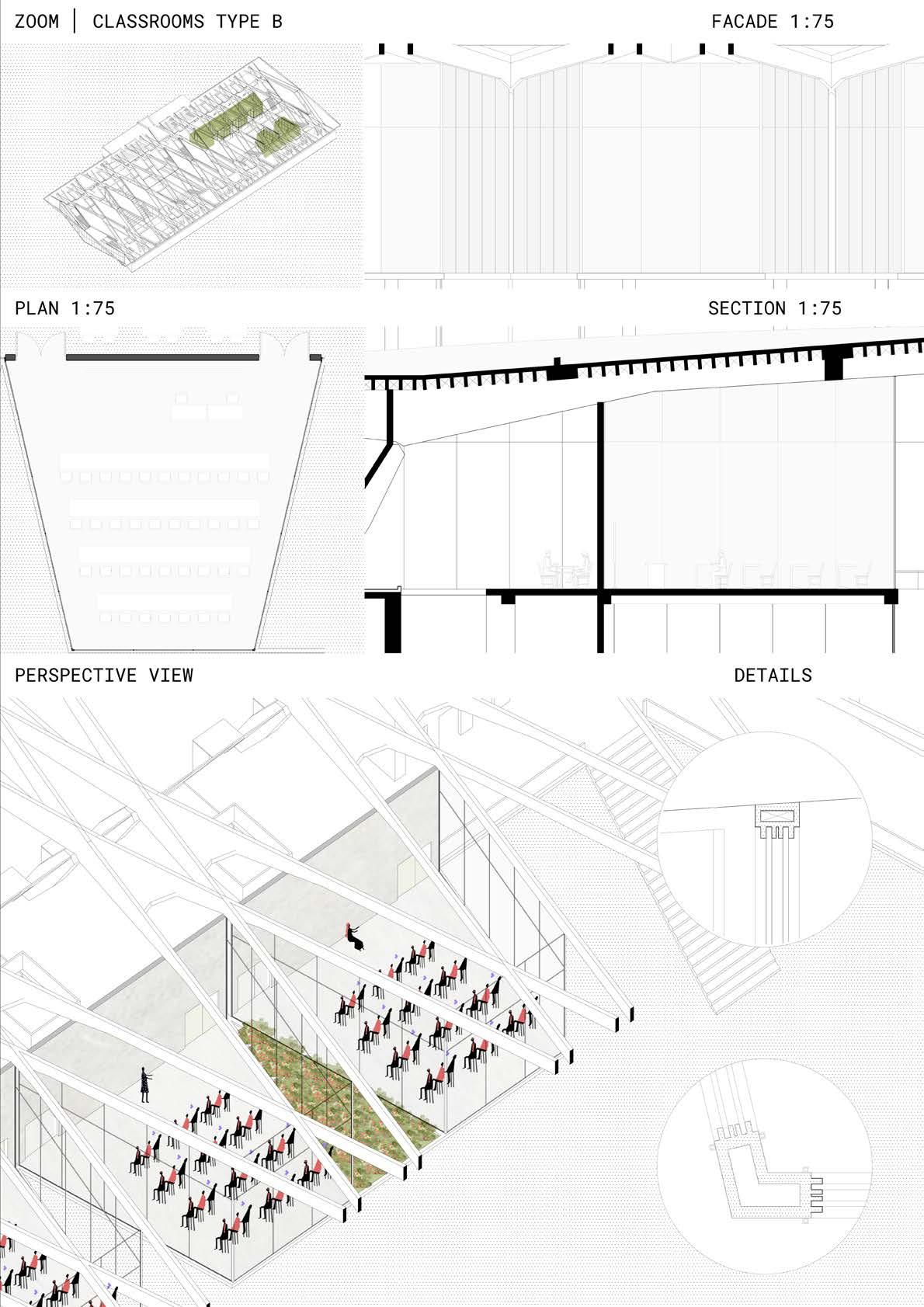 ZOOM | CLASSROOMS TYPE A Classrooms with an inclined glass facade