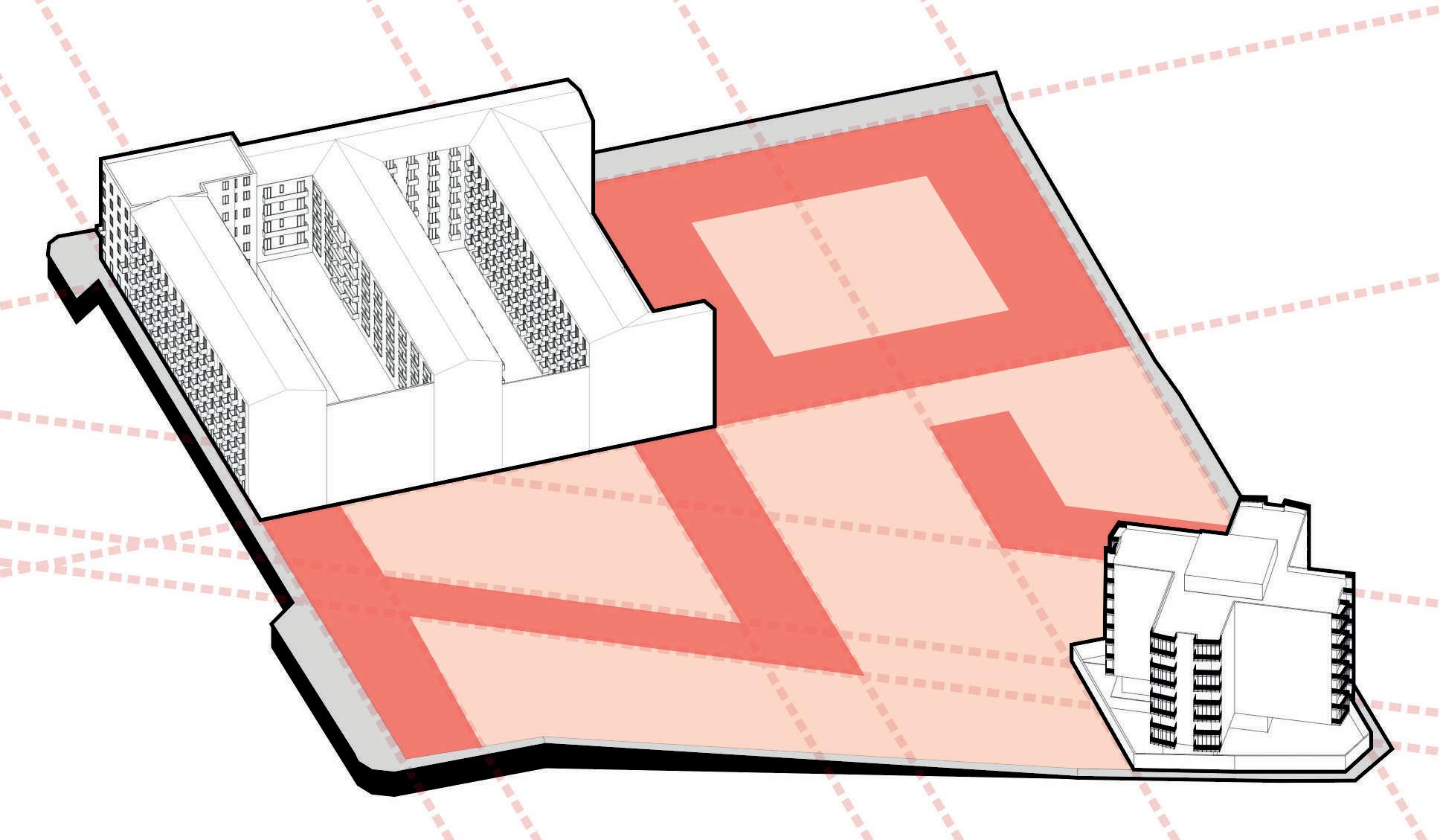 ~10.500 m2 di “spazio permeabile” al piano terra / Circa il 62% dell’area del lotto