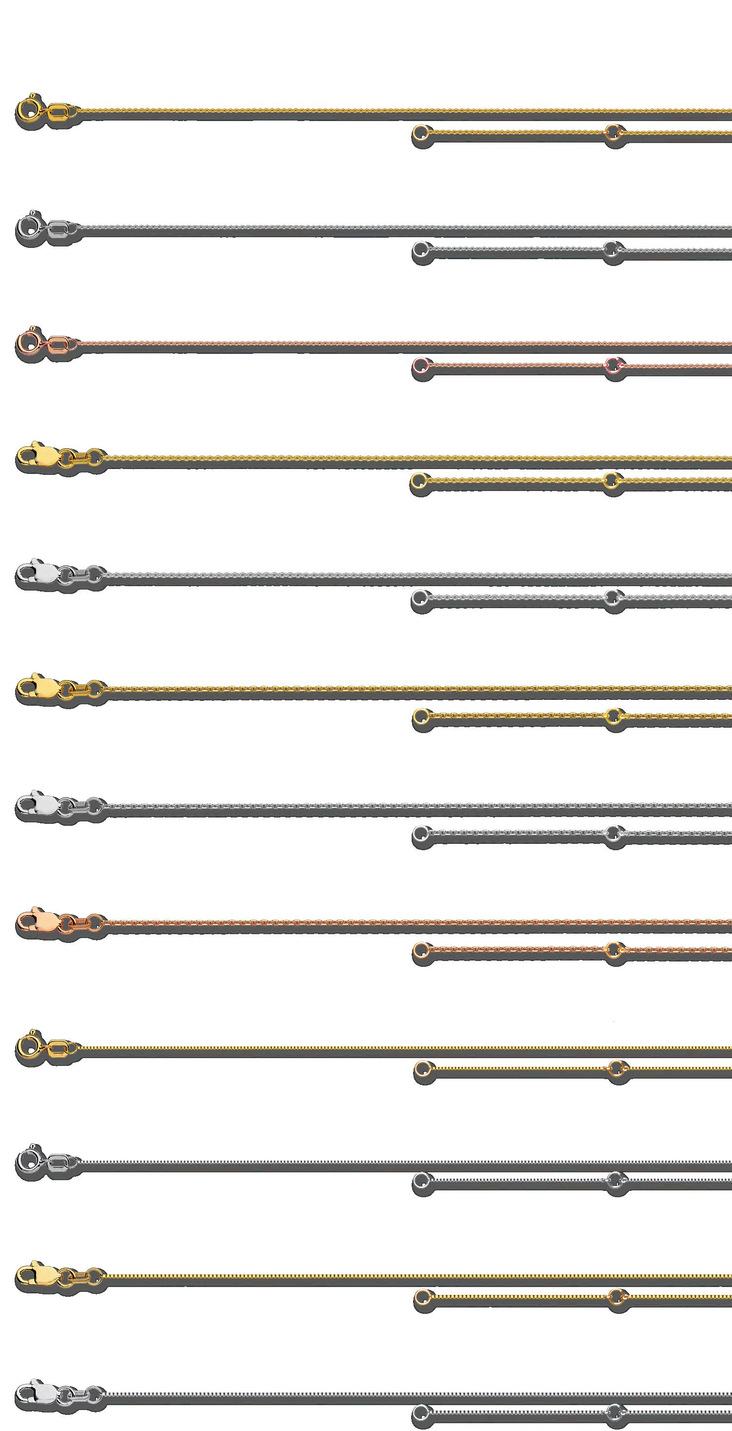 0.55 mm 0.66 mm 1.05 mm 1.05 mm 1.25 mm 1.00 mm 1.40 mm 1.05 mm 1.90 mm 2.30 mm 1.15 mm 0.70 mm 0.80 mm 1.15 mm 1.20 mm 1.95 mm 2.70 mm 2.30 mm 1.50 mm 2.10 mm 2.70 mm Rose Gold Rose Gold Rose Gold Rose Gold Rose Gold Rose Gold Rose Gold Rose Gold Rose Gold Rose Gold Rose Gold Rose Gold Rose Gold Rose Gold Rose Gold Rose Gold Rose Gold Rose Gold Rose Gold Rose Gold Rose Gold 040 Gauge 050 Gauge 030 Gauge 025 Gauge 030 Gauge 025 Gauge 035 Gauge 025 Gauge 050 Gauge 060 Gauge 020 Gauge 5RL 6RL 035 Gauge 120 Gauge 050 Gauge 040 Gauge 070 Gauge 018 Gauge 040 Gauge 050 Gauge Box Pendant Rope Pendant Rope Box Cable Cable Wheat Wheat Snake Snake Rope Designer Rolo Designer Rolo Rolo D/C Bead Forsentina D/C Forsentina Mirror Valentino Curb Sparkle Singapore Light Rope MZ006276-14K Gram Weight Unit Price 1.28 1.39 1.51 $240 $261 $283 MZ004762-14K MZ000422-14K MZ007023-14K Gram Weight Gram Weight Gram Weight Unit Price Unit Price Unit Price 2.64 2.17 2.96 2.93 2.40 3.30 $492 $389 $534 $601 $472 $657 $709 $554 $782 $546 $430 $596 3.22 2.63 3.64 MZ000011-14K MZ002486-14K MZ002044-14K Gram Weight Gram Weight Gram Weight Unit Price Unit Price Unit Price 1.51 2.00 0.40 1.66 2.20 $269 $357 $321 $430 $85 $296 $394 1.80 2.40 3.80 3.09 4.33 MZ002472-14K Gram Weight Unit Price 1.16 1.25 $208 $242 $225 $129 1.35 MZ002328-14K Gram Weight Unit Price 1.60 1.75 $286 $339 $312 1.90 MZ002050-14K Gram Weight Unit Price 2.59 2.88 $461 $563 $664 $513 3.16 3.73 MZ001463-14K Gram Weight Unit Price 3.61 4.02 $665 $815 $966 $741 4.42 5.24 MZ007307-14K Gram Weight Unit Price 1.08 1.16 $194 $224 $208 1.25 MZ000974-14K Gram Weight Unit Price 4.61 5.15 $832 $1,027 $1,222 $930 5.69 6.77 MZ009740-14K Gram Weight Unit Price MZ009124-14K Gram Weight Unit Price 2.77 3.07 $506 $615 $670 $725 $561 3.37 3.67 3.97 MZ009617-14K Gram Weight Unit Price 2.32 6.07 2.56 6.79 2.80 7.52 3.27 8.97 $446 $492 $538 $629 $1,565 $1,185 $1,059 $1,312 MZ002333-14K Gram Weight Unit Price 1.98 2.18 $353 $424 $389 $497 2.38 2.79 MZ000239-14K Gram Weight Unit Price 2.20 2.43 $393 $477 $434 2.67 MZ005824-14K Gram Weight Unit Price 0.61 MZ003267-14K Gram Weight Unit Price 2.95 2.55 $524 $453 $417 2.35 MZ001394-14K Gram Weight Unit Price 3.21 3.57 $586 $716 $847 $652 3.92 4.64 Please indicate length when ordering