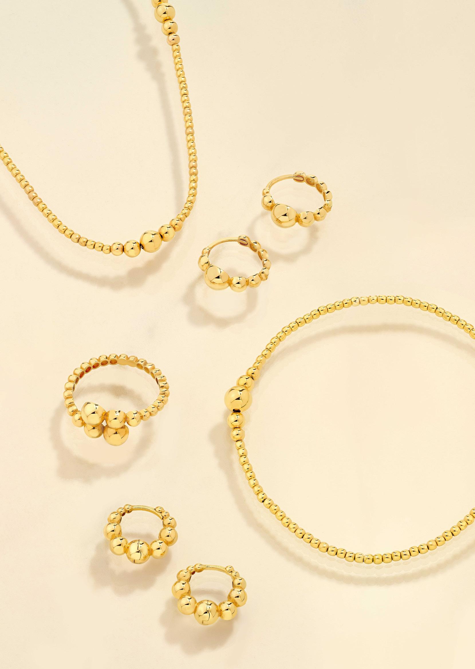B. Graduated Beaded Chain TM024931-14Y_18 $7,130 | 2.20 Round Link Flex Bracelet MF045352-14Y_7 $3,574 | Graduated Bead Bangle TM027557-14Y $5,351 | 2.20 Round Link Flex Bracelet MF045352-14Y_7 $3,574 | Puffy Bead Ring MF045249-14Y_7 $1,483 | Beaded Wire Ring MF035391-14Y_7 $832 | Graduated Bead Bypass Ring TM027574-14Y_7 $938 | 2.20mm Round Link Flex Bracelet MF045352-14Y_7 $3,574 | Hollow Rounded Link Bracelet MF042448-14Y_7.50 $1,203 | 6mm Beaded Bracelet TM024557-14Y_8.50 $3,398 | Graduated Bead Ring TM027575-14Y_7 $610 | Triple Bead Ring TM027572-14Y_7 $2,509