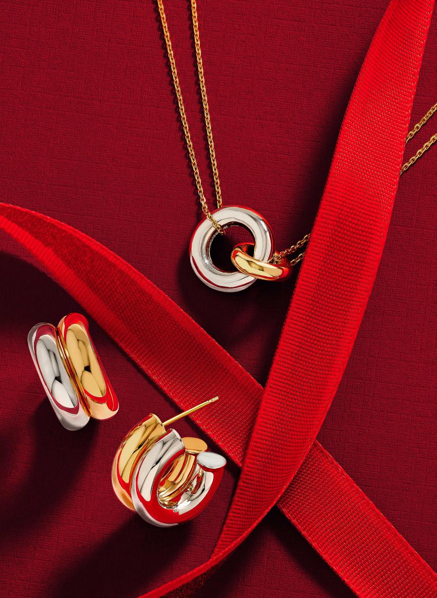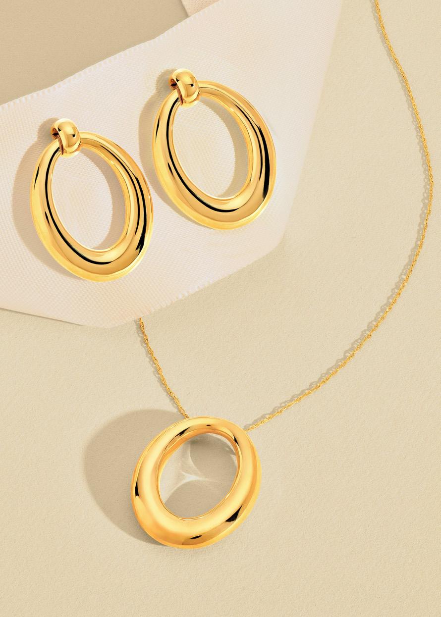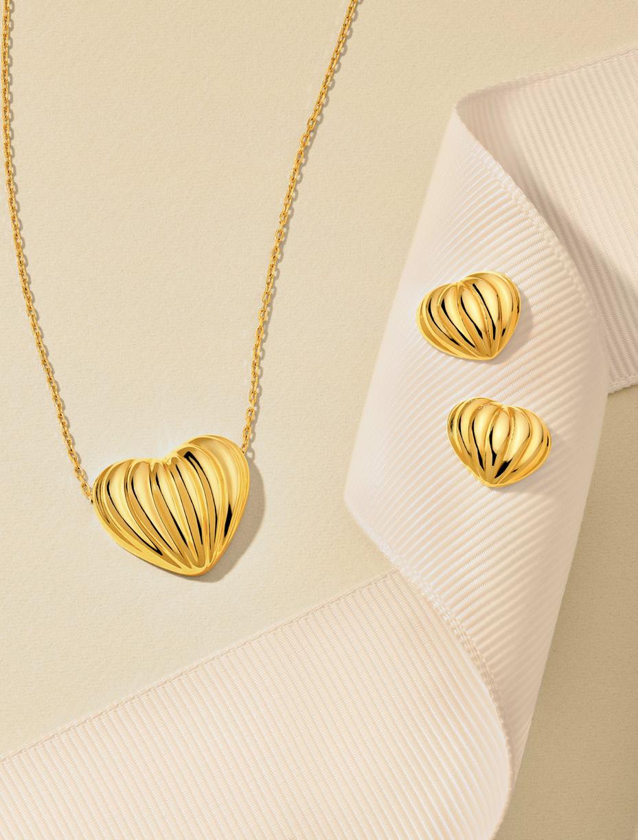 B. Fluted Heart Pendant Necklace TM028858-14Y_18 $1,590 | Fluted Heart Small Studs TM028862-14Y $795 | C. 15mm Small Double Two Tone Open Hoops TM024459-14YB $1,542 | Two Tone Double Chain Interlocking Circle Necklace MF045621-14YB_18 $2,014 | D. Diamond & Bead Studs MF045128-14Y $1,045 | Diamond Bezel Bead Necklace MF038641-14Y_18 $1,132 | E. Graduated Oval Hoop Studs MF044062-14Y $2,229 | Tapered Puffy Oval Pendant Necklace MF007398-14Y_17 $1,203