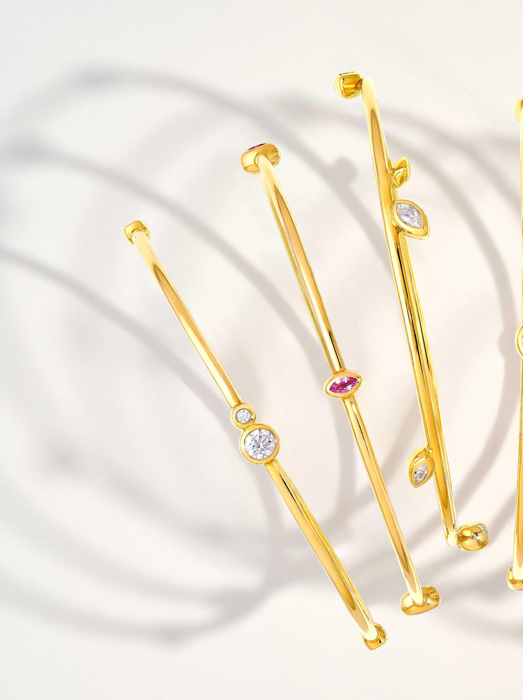 A. Melodie Bangle (Duo Diamond) TM030792-14Y $7,117 | Melodie Bangle (Gem Marquise) TM030889-14Y $6,005 | Melodie Bangle (Slanted Pear & Marquise) | Melodie Bangle (Pink Sapphire Marquise) TM030888-14Y $6,150 |