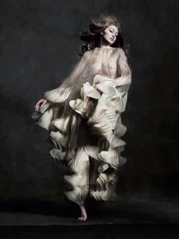 Esgibt drei Kategorien, in die ich Studioaufnahmen einordnen würde. Die erste ist ein Test, den Sie selbst zusammenstellen – Sie wählen das Motiv oder Modell, den Friseur, den Maskenbildner, den Stylisten und die Kleidung. Sie haben 100-prozentige Kontrolle. Dann haben Sie die redaktionelle Arbeit, die für Zeitschriften bestimmt ist, wenn Sie ein wenig Kontrolle abgeben, weil Sie mit einem Moderedakteur zusammenarbeiten, einer Kombination aus Stylist und Art Director. Er kontrolliert also ein bisschen den Look und stellt Ihnen auch die Kleidung zur Verfügung.