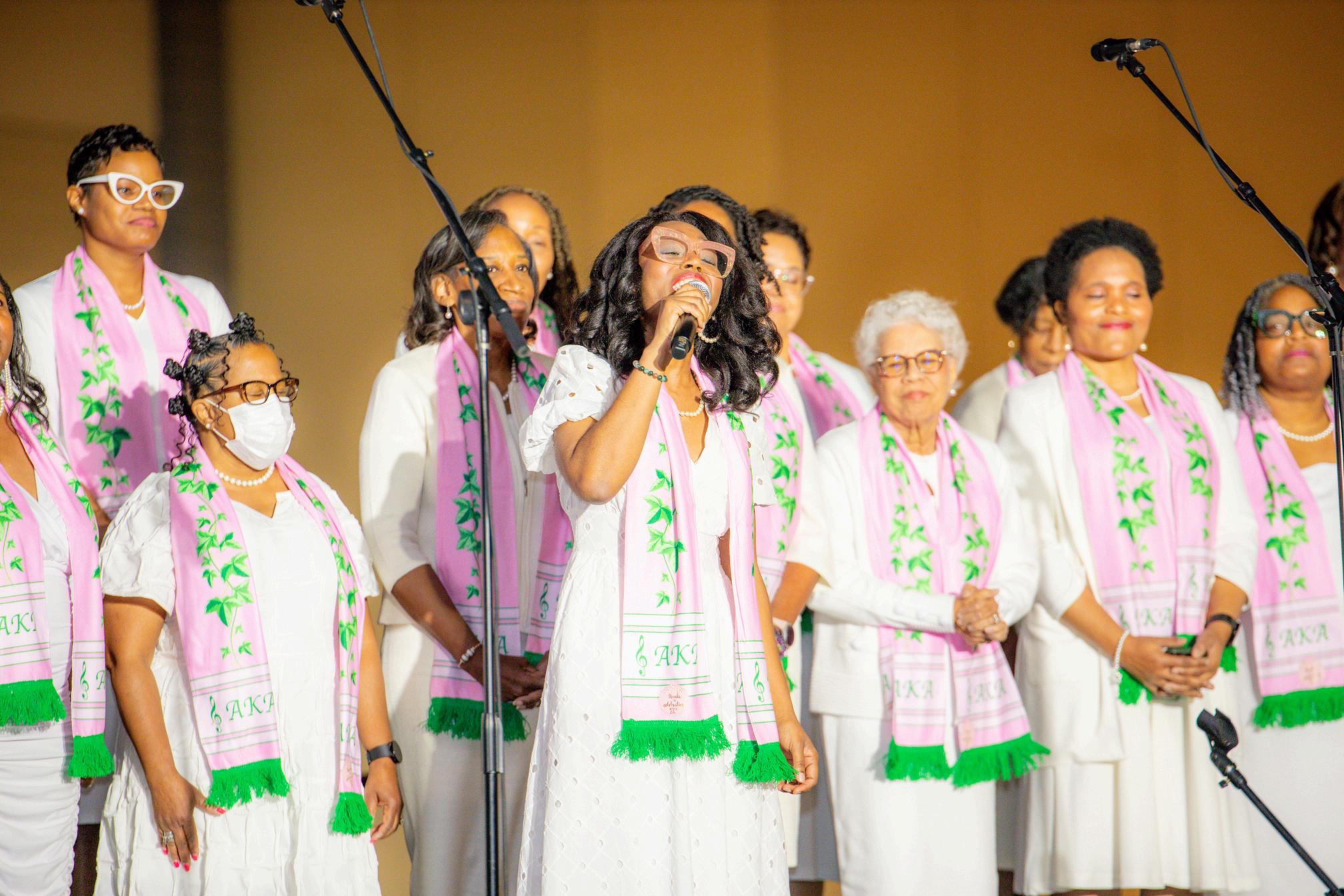 Members of Alpha Kappa Alpha Sorority, Incorporated® and community guests gathered at the Greater Richmond Convention Center for the public meeting of the 72nd Mid‑Atlantic Regional Conference. The meeting recognized and celebrated outstanding community leaders making a difference in social justice, community empowerment, and environmental advocacy. The crowd was uplifted by powerful performances from Grammy-winning gospel artist Hezekiah Walker and the Virginia Union University Gospel Choir. Led by Mid-Atlantic Regional Director Soror Nadine Vargas Stewart, the event had representation from across Virginia and North Carolina.