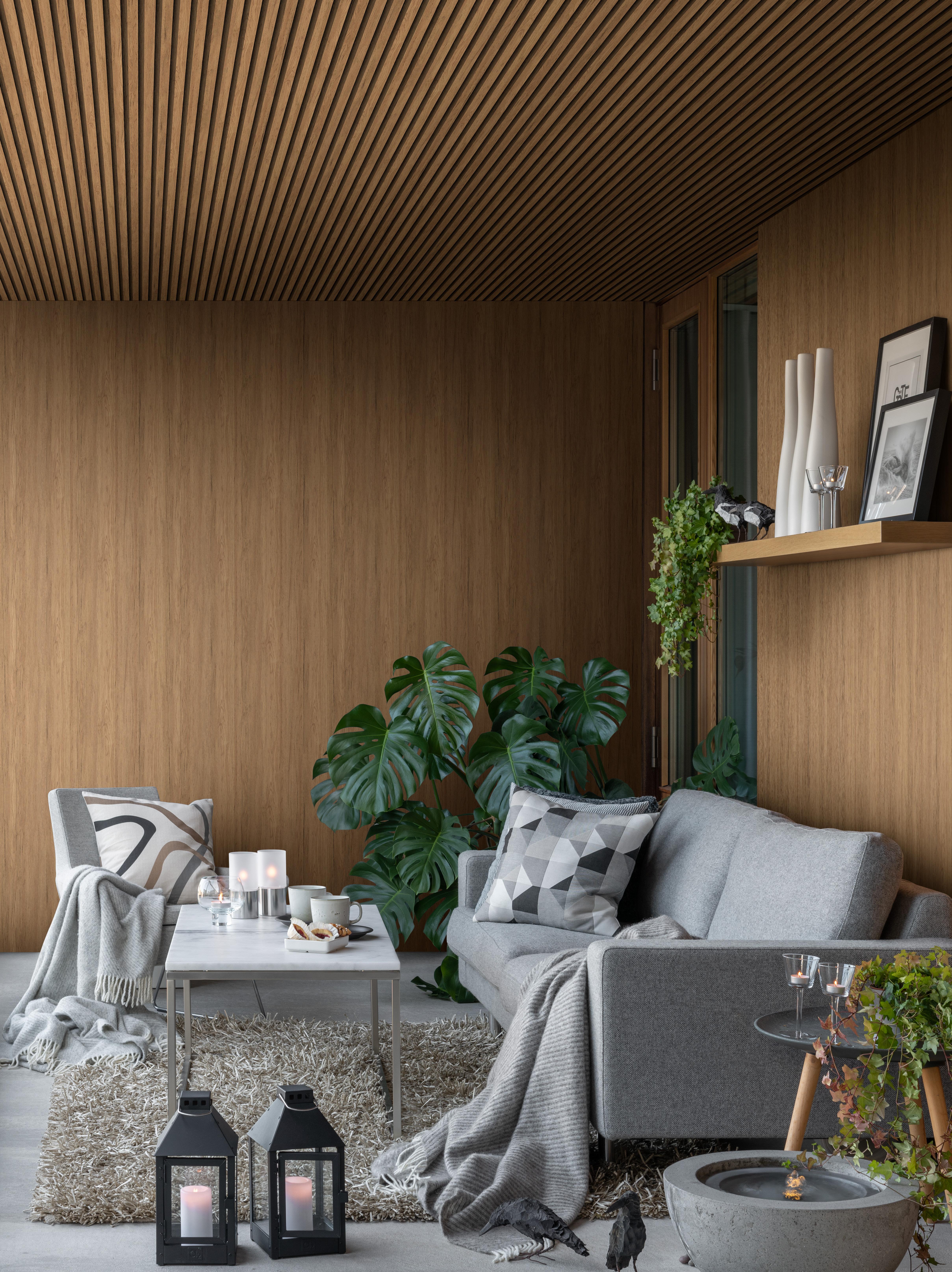 Trätapet, valnöt - 11932, Ribbvägg taket, valnöt - 11938