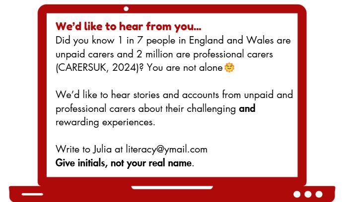 Julia’s comments: Thank you for your honesty and for writing in D. Your side of caring is really important to share. Unpaid carers should value professional carers, like you, very, very much.
