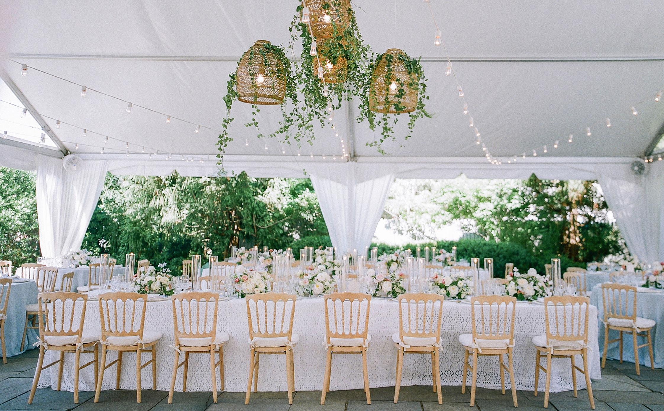 A choice of wedding tables, chairs, linens, china, flatware, and stemware are included in each Wedding Collection. Upgrades such as farmhouse tables, velvet linens, and chargers, to name but a few, are available and can be discussed at any time during the planning process.