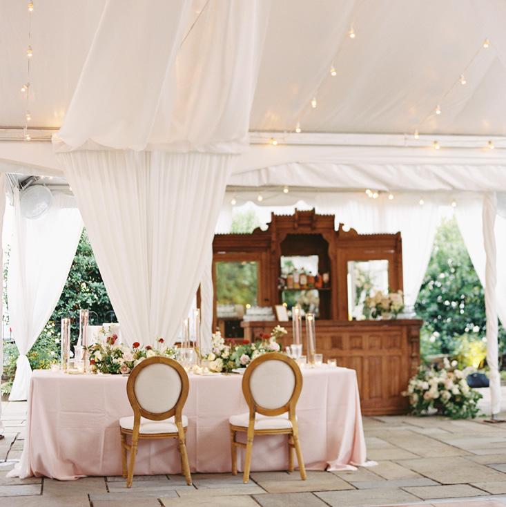 A tent is included for The Garden Terrace with all Collections. The Courtyard Gardens may be tented for an additional fee. A ceremony weather backup tent is required to be reserved for all Collection Weddings with 60 or more guests.