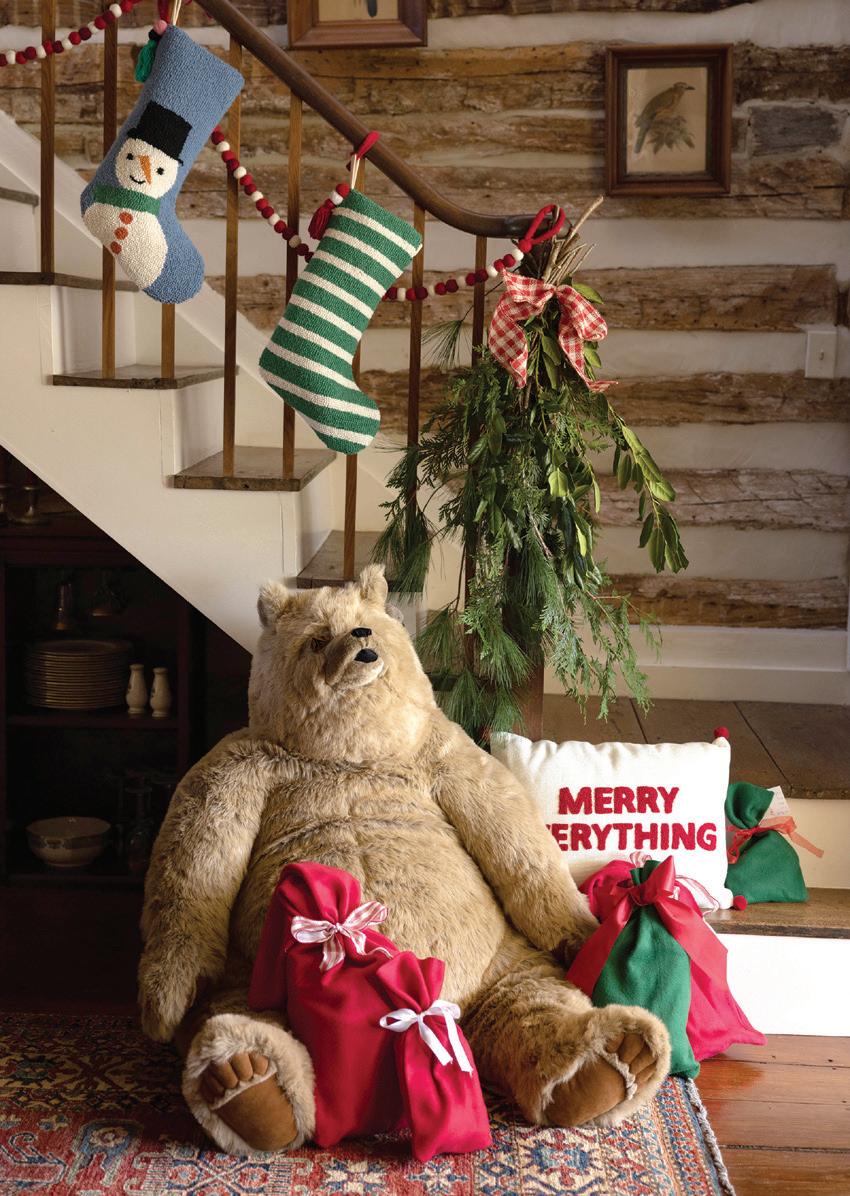 – McNaughtonLeft: Maverick and McNaughton hang Felt So Good ornaments ($12) on their tree. Right: A sleek Vilac Vintage car ($200). Bottom left: A massive Manhattan Toy bear ($450) is too big to fit under the tree, but is sure to delight.