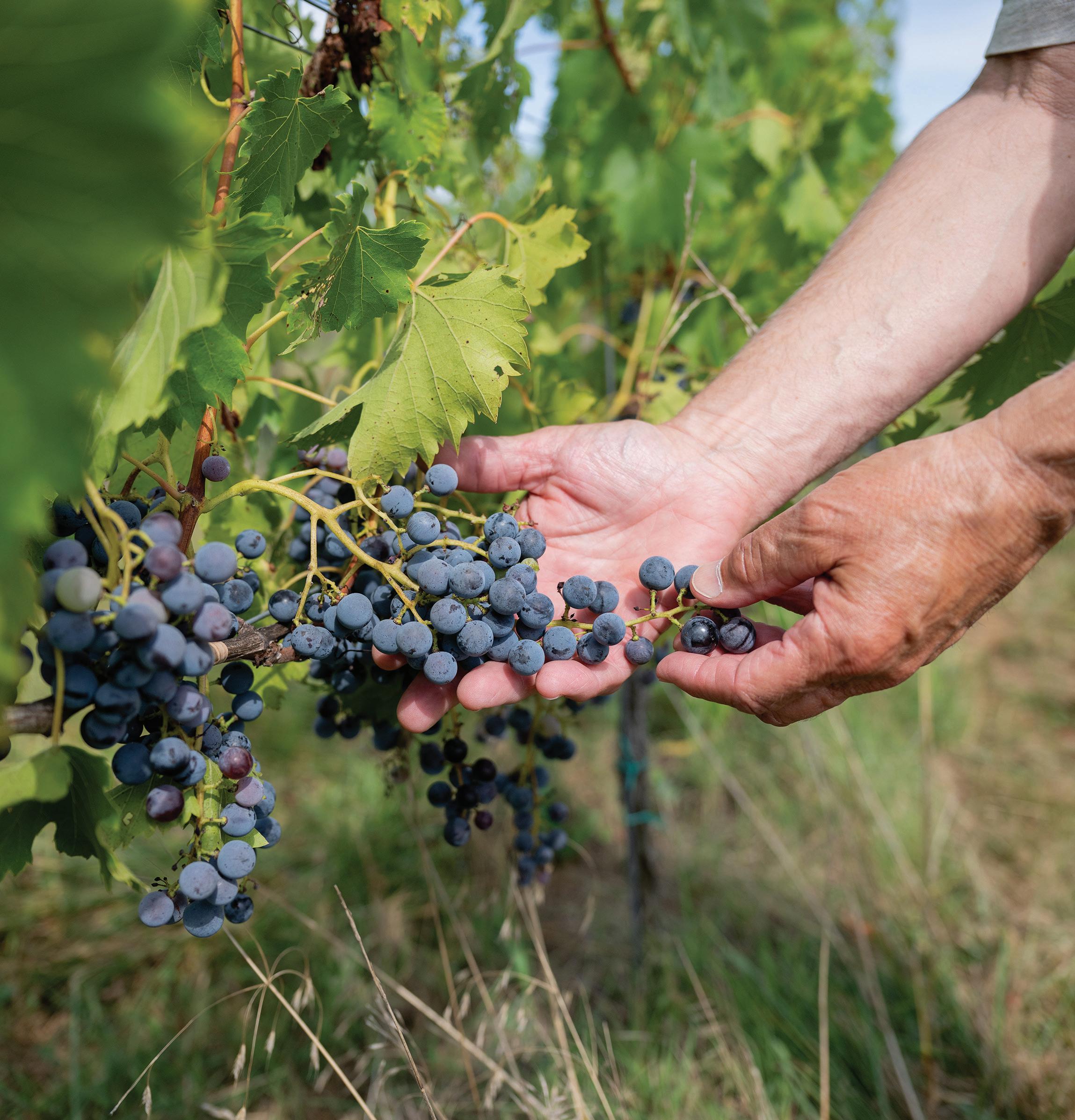 Rather than try to replicate wines from other regions, Arterra celebrates local practices and produces wine that is distinctly Virginian. Making progressive clean wine means that grapes are fermented with native yeast that naturally occurs on their skins without additives. “I use a minimalistic approach. We want to capture the character of the grapes as they grow here — a true Virginia-style wine,” Murray says. “The process is based on perception and intuition as opposed to lab work.” Only grapes grown at Arterra and Seven Oaks are picked for their wines.