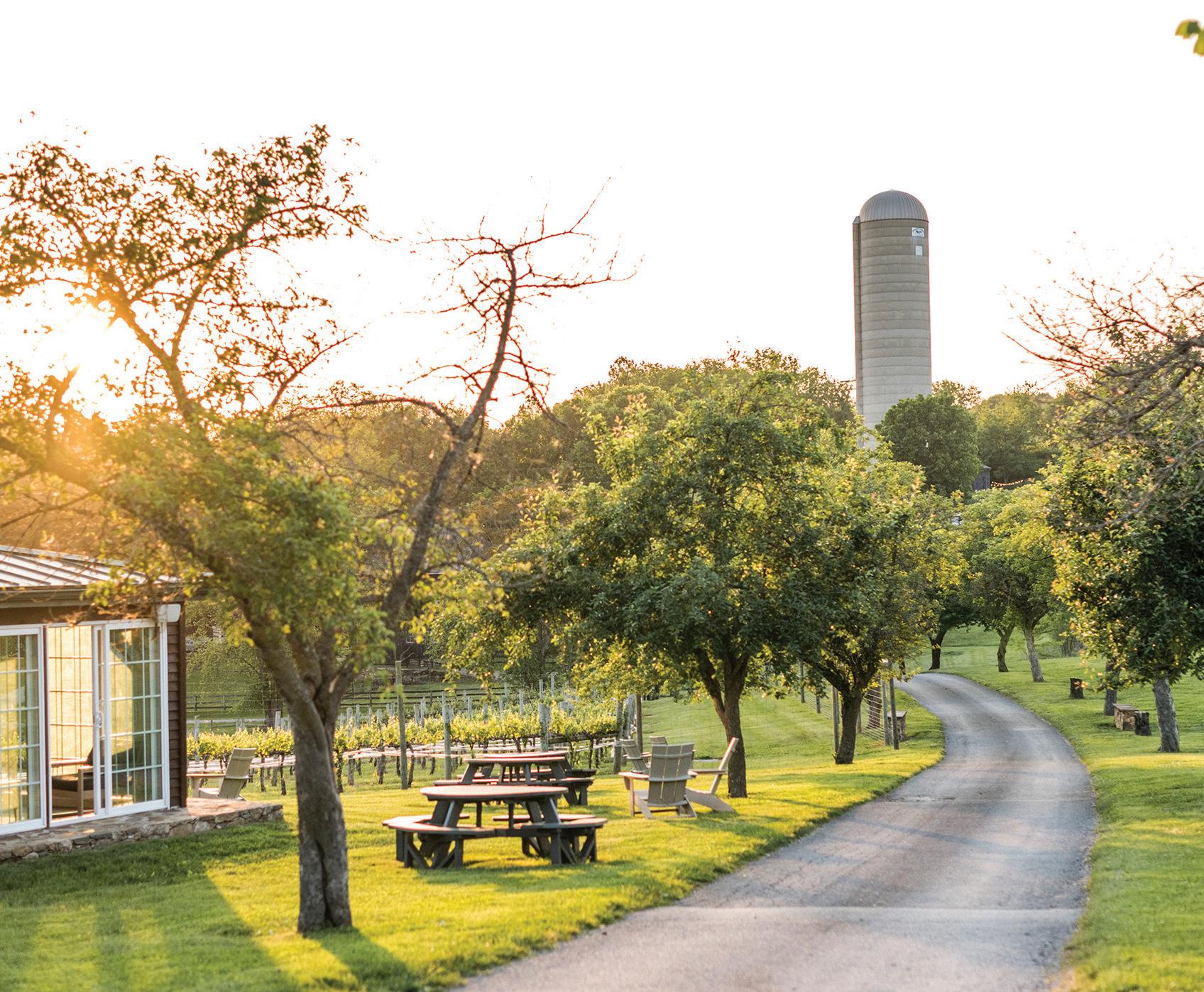 The vineyard is intentionally nestled in trees, working with nature rather than against it.
