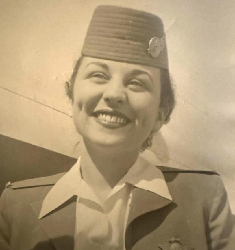Top: Gennette in her Capitol Airlines uniform. Bottom: Gennette at The Wellington.