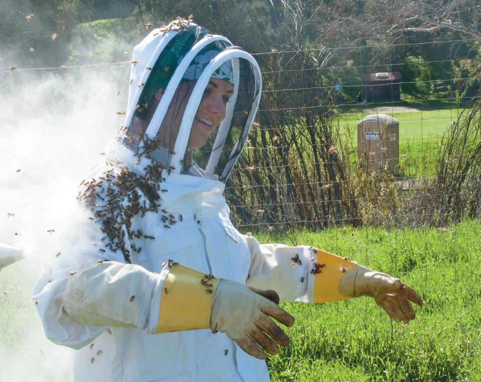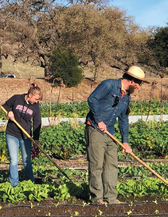 FROM TOP, CLOCKWISE: Students learn about beekeeping while working with Midland’s hives; octopus discovery during a Marine Biology trip to the Central Coast; students work with the Farm Manager in the garden; freshman return home from a night out on the Midland property.