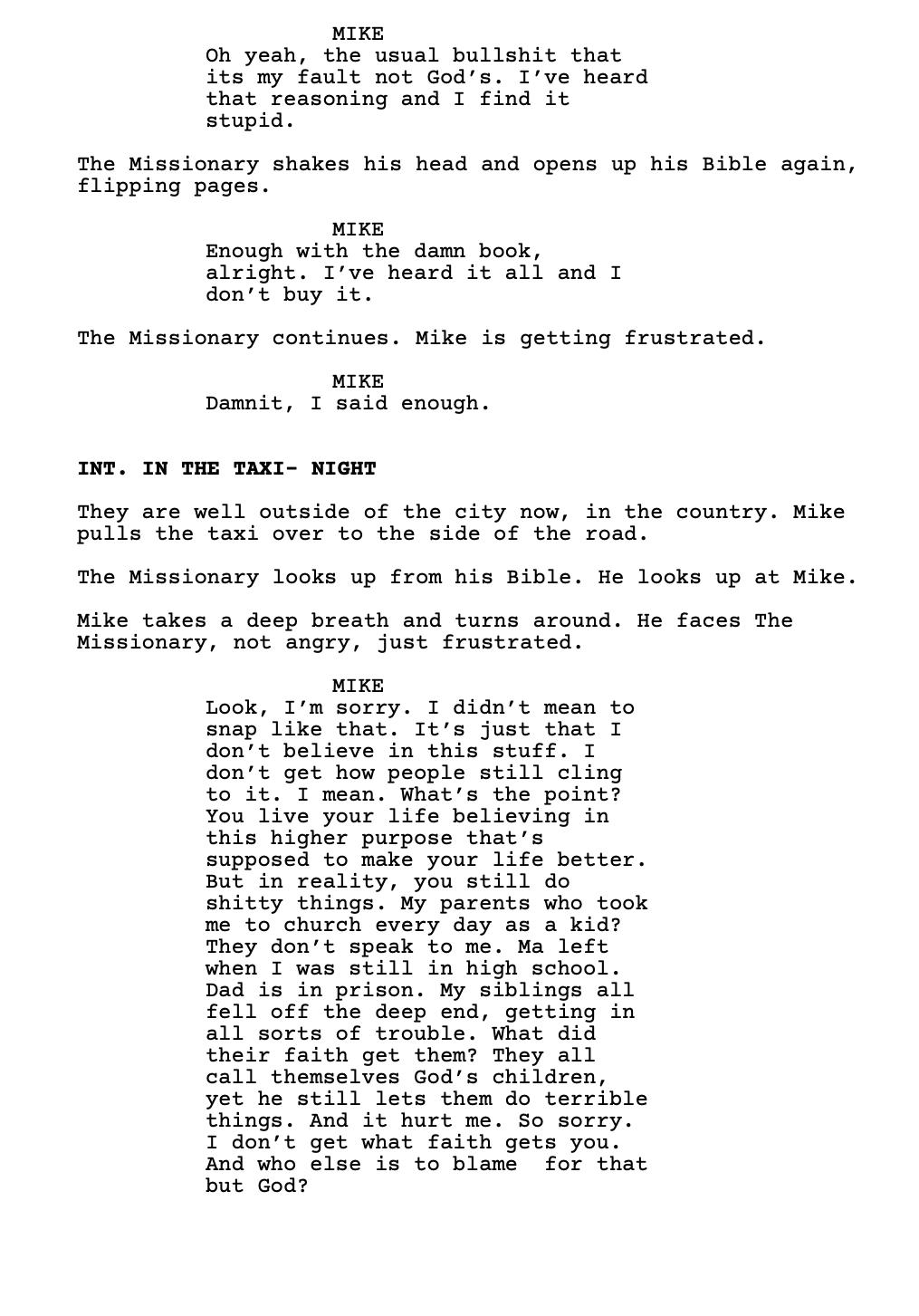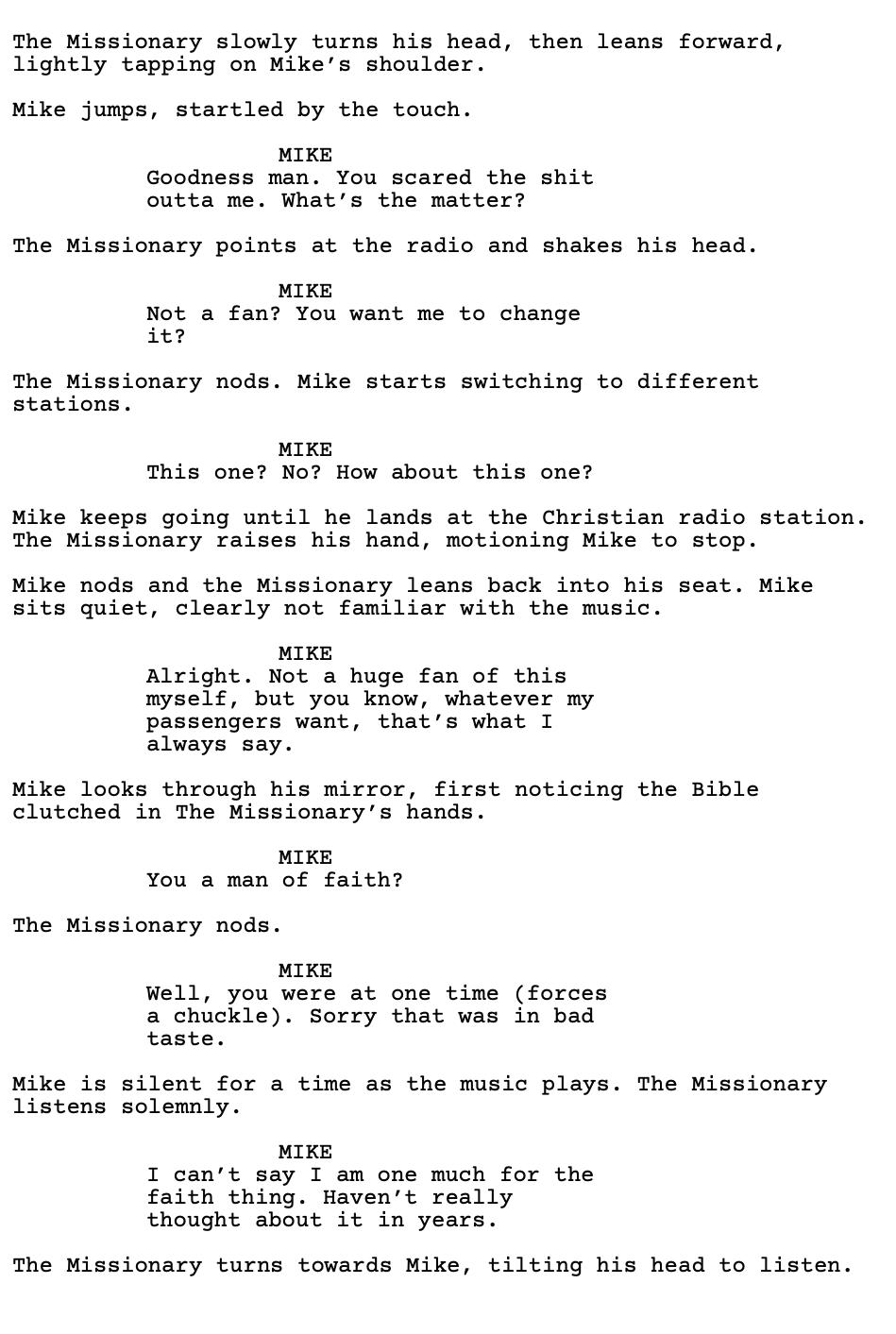 “Do you ever just feel like just stepping out into the traffic? Just end it all?” The girl asks me, ending the silence between us.