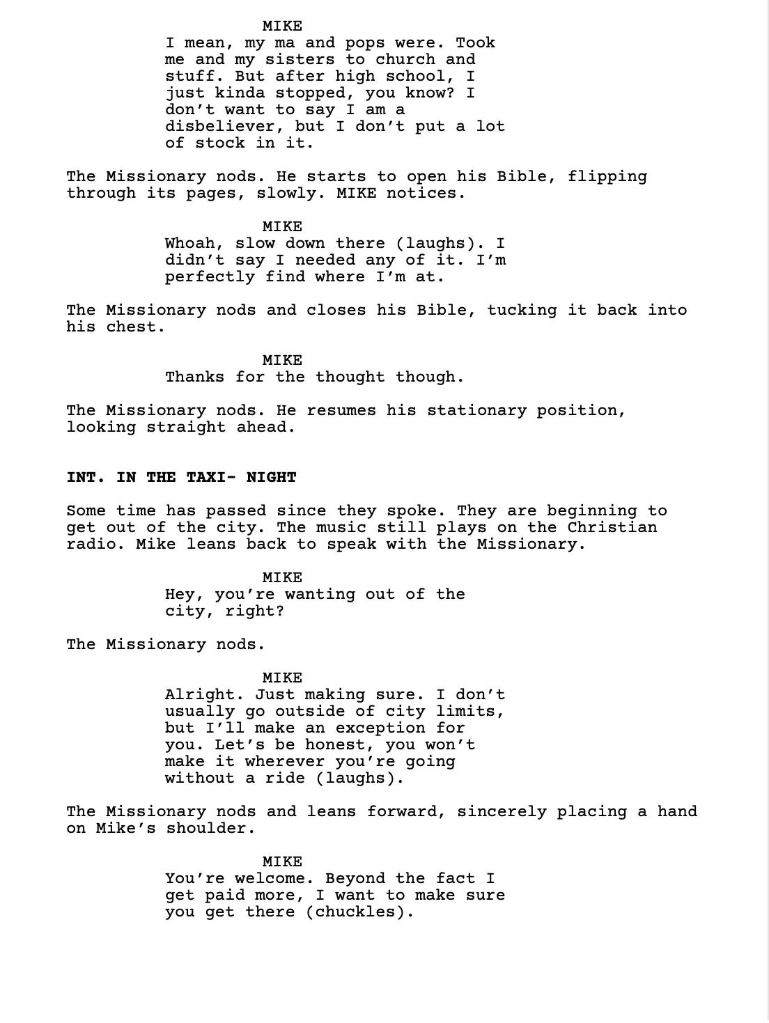 “Oh.” Is all I can say. I don’t know how to handle this situation. Retreating into my silence, I let her sit and wait for me to say something. We spend a few moments watching the traffic.