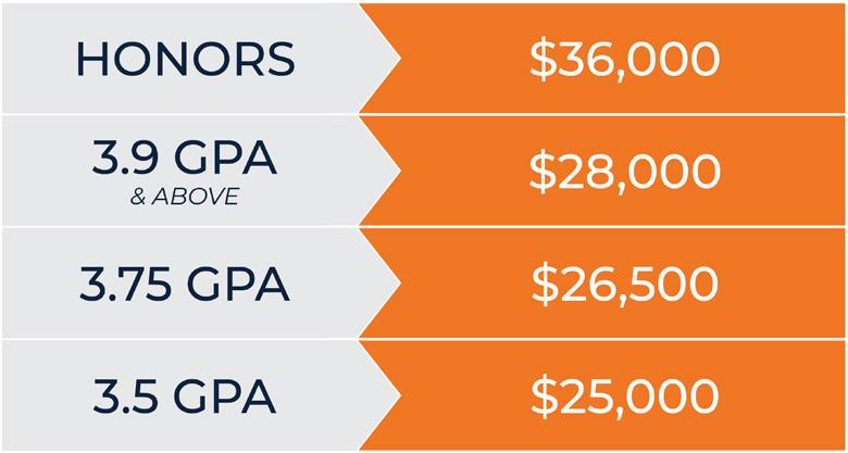 This scholarship program holds students of many interests and skill sets. All students are eligible to be reviewed for a Presidential scholarship by completing the application form in their Admissions Portal.
