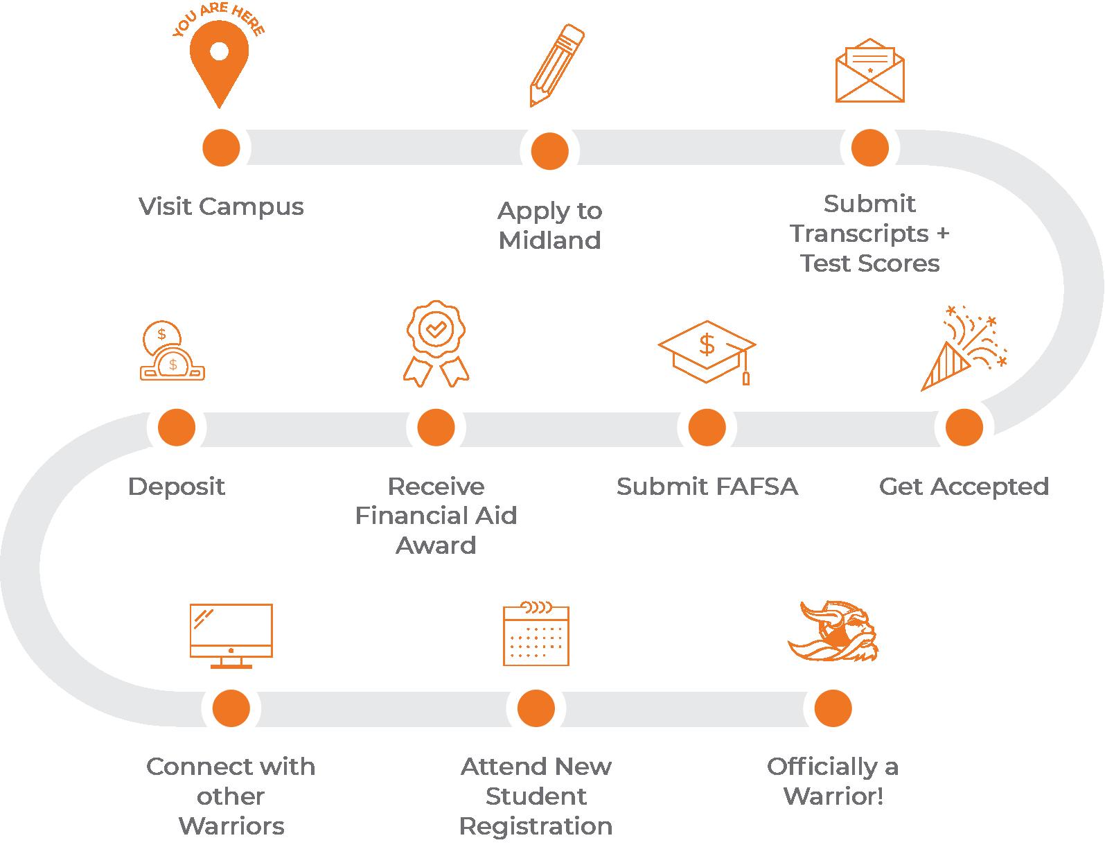 On your visit you will experience your first day as a Warrior, so your Midland experience starts today! You will see the places on campus where you will live and learn, get to know important facts about Midland, and see our values in action. We will also seek something deeper on our quest to support you today. Our mission for your campus visit is simply this; we want to connect you to the resources, people, and programs that will allow you to author your own Warrior Story.