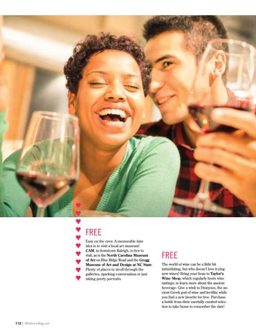 FREE Easy on the eyes: A memorable date idea is to visit a local art museum! CAM, in downtown Raleigh, is free to visit, as is the North Carolina Museum of Art on Blue Ridge Road and the Gregg Museum of Art and Design at NC State. Plenty of places to stroll through the galleries, sparking conversation or just taking pretty portraits.