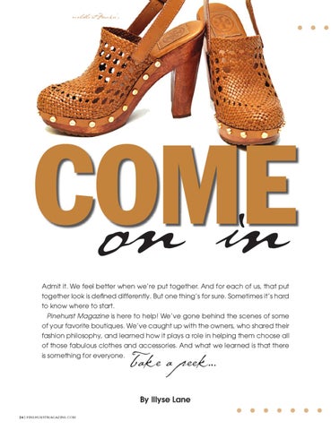 COME on in Admit it. We feel better when we’re put together. And for each of us, that put together look is defined differently. But one thing’s for sure. Sometimes it’s hard to know where to start. Pinehurst Magazine is here to help! We’ve gone behind the scenes of some of your favorite boutiques. We’ve caught up with the owners, who shared their fashion philosophy, and learned how it plays a role in helping them choose all of those fabulous clothes and accessories. And what we learned is that there is something for everyone.