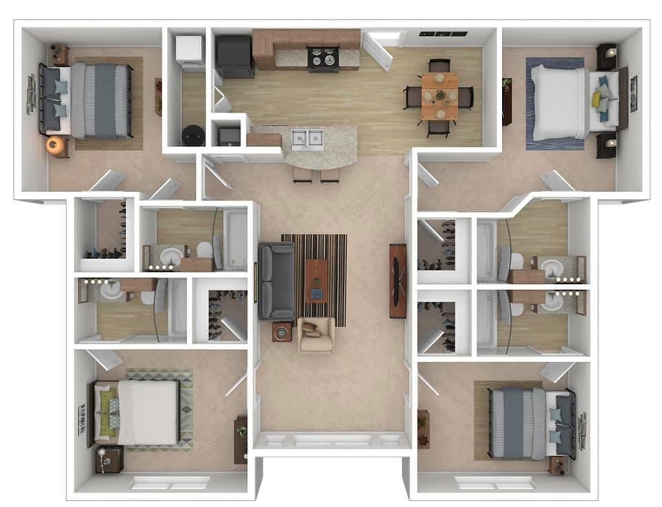 Midtown Corpus Christi, off-campus Housing offers a full set of amenities that features 2, 3, and 4-bedroom floorplans, Walk-in closets, Hardwood-style kitchen floors, and High-speed internet.