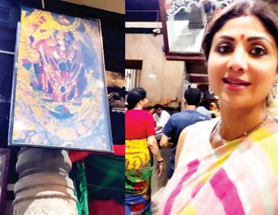 MUMBAI, (IANS) Shilpa Shetty along with her family visited the Sri Durgaparameshwari Temple in Kateel, Mangalore. The Bollywood actress and entrepreneur said that she wanted to introduce her kids to her Mangalorean heritage and culture, which she is very proud of.