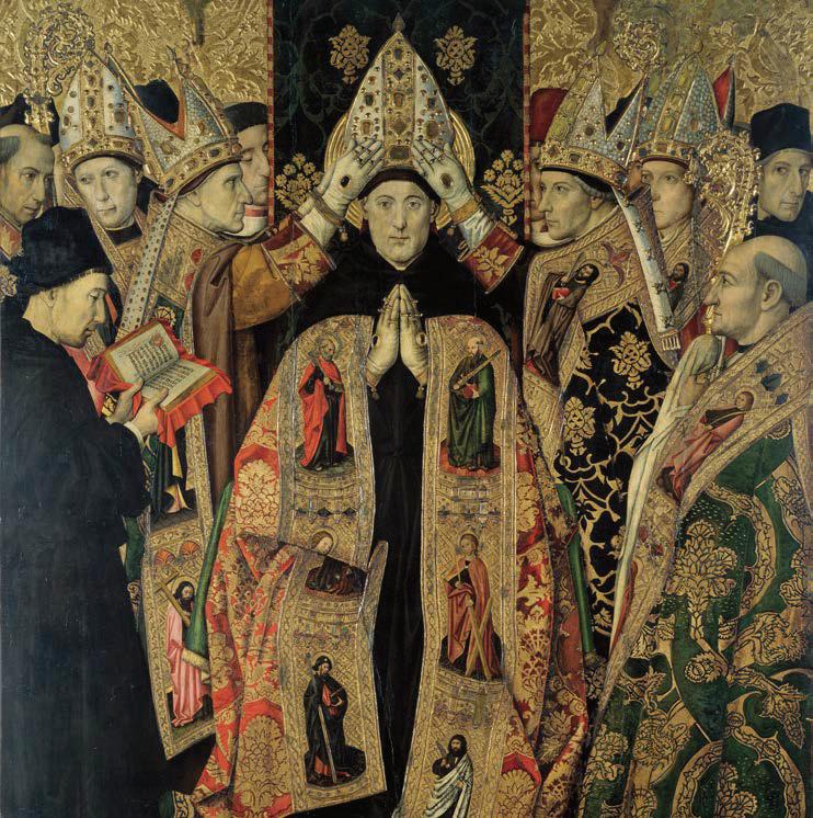 Izquierda: Retablo de San Agustín de Jaume Huguet y Pau Vergós realizado entre 1462 y 1475 para ser colocado en el altar del convento agustino de Sant Agustí Vell ("Viejo San Agustín") en Barcelona, España.