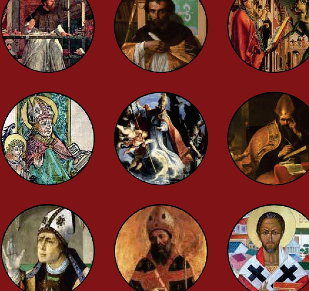 teológica de la Iglesia. La presencia de Agustín entre estas figuras representa la sabiduría y la autoridad colectiva de los mayores contribuyentes de la Iglesia.