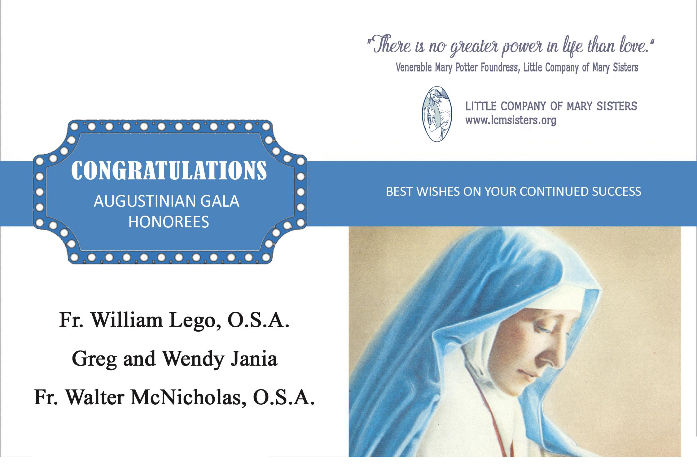 The Priors Provincial of the Augustinian provinces in North America extend congratulations, gratitude, and best wishes to the Honorees of the 2024 Gala: