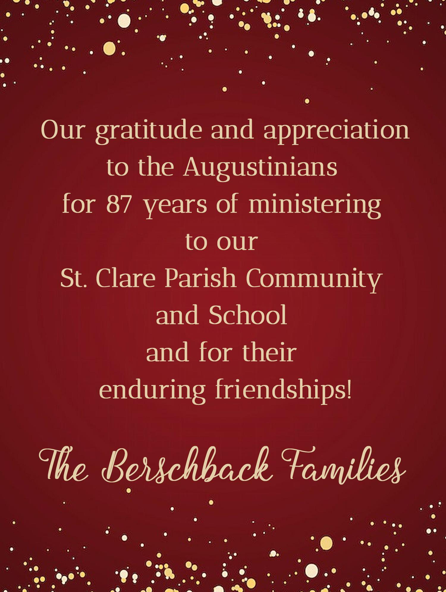 Thank you to the Augustinian friars, past and present, for their life and service. Through your faith, our belief is strengthened.