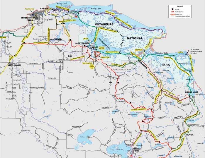 miles from Grand Rapids to Ely and is a popular multi-use route shared by snowmobilers, cross-country skiers, dogsledders, and fat-tire bikers. The trail meanders through remote wetlands, picturesque birch, aspen, and spruce forests, and along frozen lakes and streams.