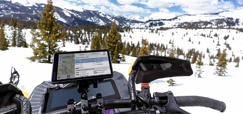 The new Tread 2 brings adventure to life with a 6-inch highresolution, ultrabright display, which according to Garmin was designed to be easy to view in direct sunlight and easy to operate while wearing gloves. It also has a robust construction that is said to withstand weather and demanding terrain. Built-in sensors include an altimeter, barometer, compass and pitch/ roll gauges. Additionally, Tread 2 includes rugged roll tube and