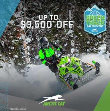 biggest sale! Unleash the thrills of huge savings on select Arctic Cat during the Green Track Sales Event! advantage of up to $3,500 in savings when your next Arctic Cat trail, crossover, youth sled at [DEALER NAME] today. petite-friendly Blast series to the thrilling lineup, and everything in between, you’ll on over 50 models! These deals are limited inventory so hurry in before at [DEALER ADDRESS].