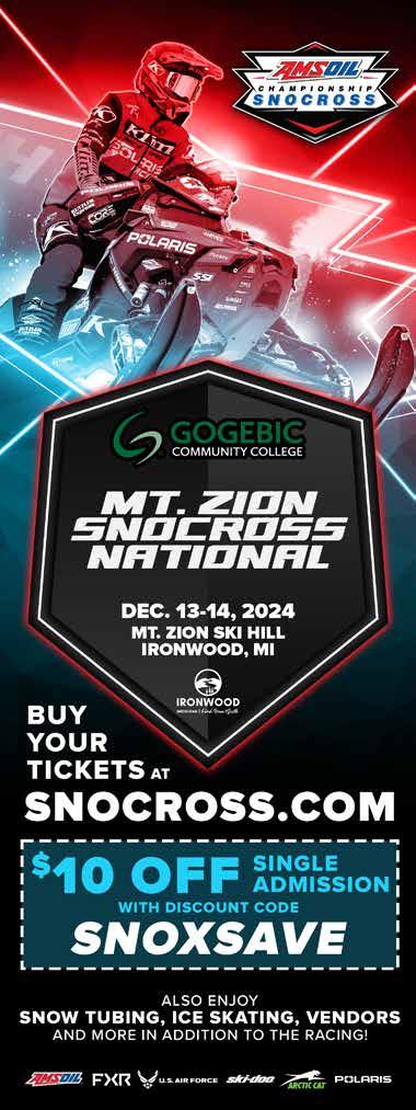 ceremony. This year’s inductees include Scott Davis, Gaetan (Chester) Duval, David Shepherd, and Gary & Bruce Vessair. Other activities include Legends Laps where participants can experience the famed ice oval track at the World Championship Derby Complex; a Friday night fish fry with guest speakers; vintage and modern trail riding: and an open house at the Snowmobile Hall of Fame. Visit snowmobilehalloffame.com to get your tickets now.