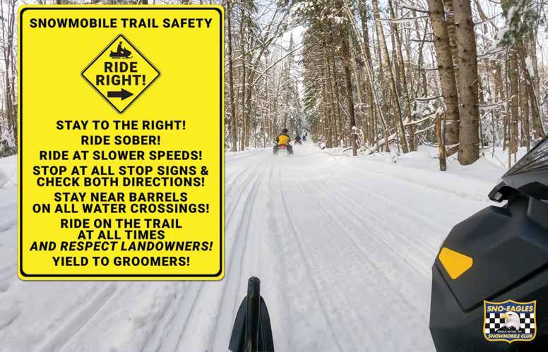 We are very passionate about enhancing snowmobile safety through this structured campaign. It would be beneficial for snowmobile clubs statewide to start sharing a uniform safety message to help educate/remind snowmobilers. We are more than willing to share our program with other interested clubs. We’ve also designed new artwork to include on a new sign we are installing at trail system kiosks as additional reminders.