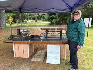 The man’s name was Carl Eliason, who in 1924 built the first snowmobile prototype snowmobile called a motor toboggan. Carl was honored on June 8, 2024 by dedicating the trails he rode and the Plum Creek Snowmobile Bridge. The Barnstormers of Sayner still groom and maintain these trails, 10, 9 and 15 from the Sayner Arch through TIN #205, there are parts of this trail that go into other Vilas County snowmobile clubs. The Vilas County Board has also made a resolution to acknowledge Carl’s achievements.
