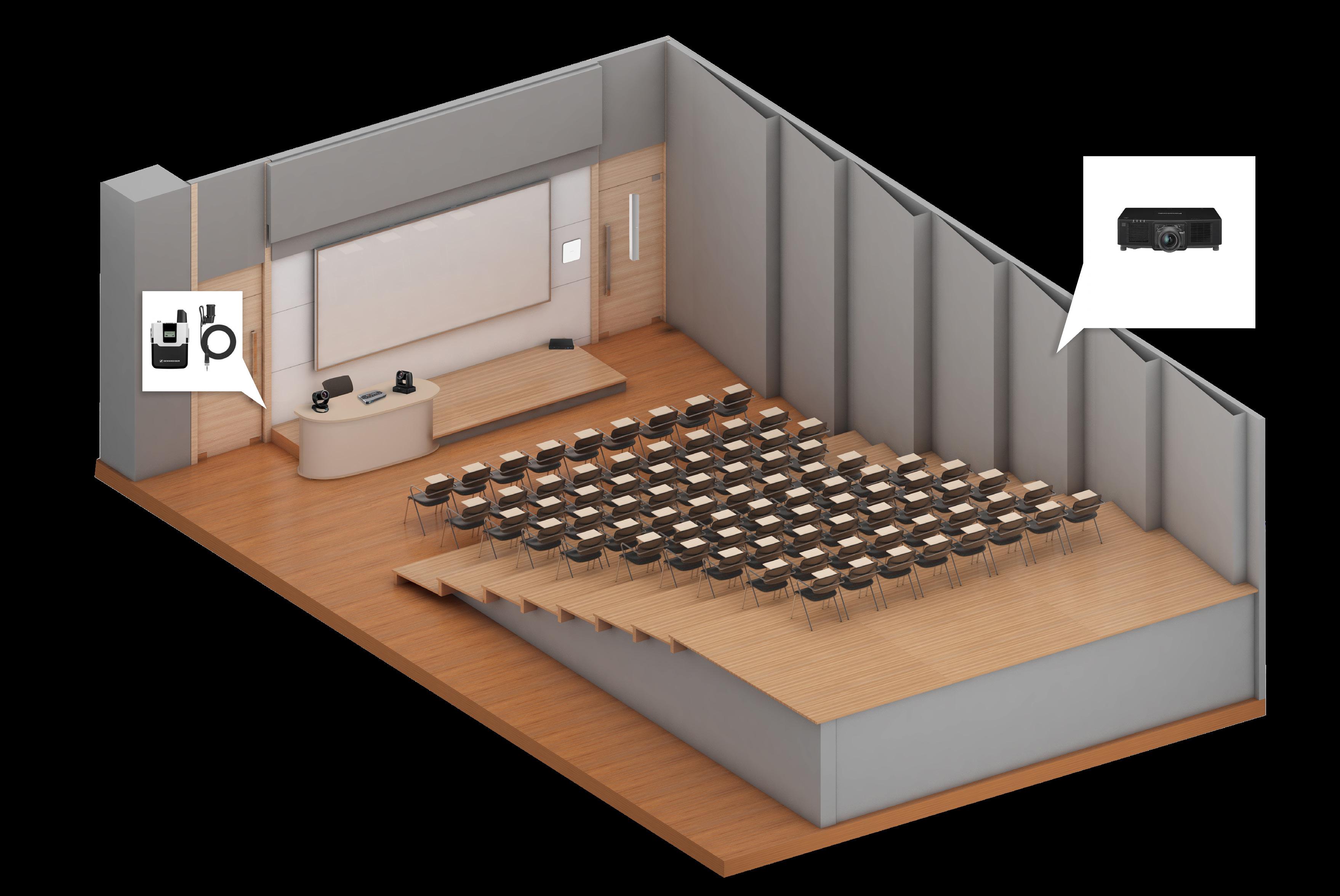 Transform lecture halls with a solution that delivers clear communication, dynamic visuals and seamless hybrid teaching. High-performance projectors ensure every student has a perfect view, while UC video systems and camera mixing enable professional-quality streaming for in-room and remote audiences. Powerful microphones and speakers provide clarity and presence, so every word is heard across the space. Together these technologies create an engaging, inclusive environment built for modern education.