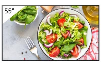 SMOM55NDS features a 55” high-brightness display with UHD resolution and simple content management, ideal for vibrant retail and public messaging. Its slim design and robust build suit continuous operation in dynamic environments.