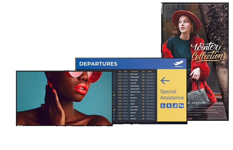 From high-bright window-facing displays to ultra-wide and stretch formats, displays support a wide range of environments. Interactive and specialist display technologies continue to expand use cases beyond traditional signage.