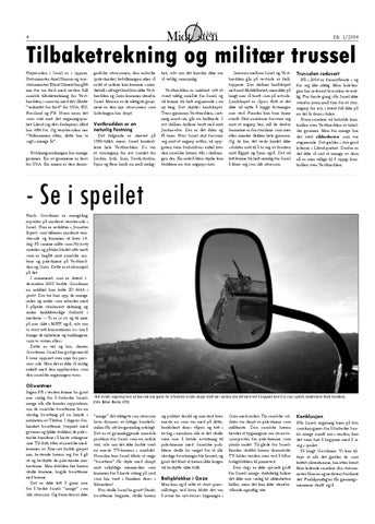 - Se i speilet Hirsh Goodman er mangeårig reporter på moderat venstreside i Israel. Han er redaktør i Jerusalem Report, som tilhører moderat venstreside og kommer ut hver 14. dag. På samme måte som Ha’aretz omtaler og påtaler bladet ofte urett som er begått mot israelske arabere og palestinere på Vestbredden og Gaza. Dette er et eksempel på det. I nummeret som er datert 1. desember 2003 hadde Goodman en artikkel han kalte Et blikk i speilet. Der tar han opp de mange jøder og andre som arbeider med å påpeke ubalansert dekning og andre kritikkverdige forhold i mediene. – Vi er jo av og til inne på noe slikt i MIFF også, selv om vi stort sett konsentrerer oss om å bringe de nyhetene og vinklingene som vi savner ellers. Dette er vel og bra, skriver Goodman. Israel har god grunn til å være opprørt over mye fra pressens side. Men det er ikke så veldig enkelt med den oppførselen som den israelske regjeringen viser.